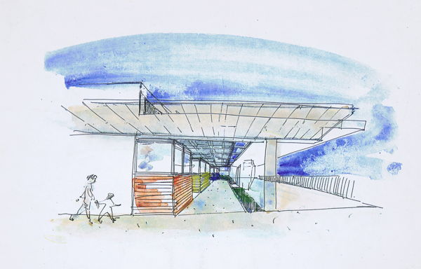 Por razones funcionales ubica la zona de aulas, servicios y tutoría a continuación de las existentes. De esta manera completamos la fachada al Paseo con una unidad funcional y formal, evitando la reproducción mimética del edificio de en Sert en la fachada Norte y tratándola de manera que priorice el acceso principal por ella.