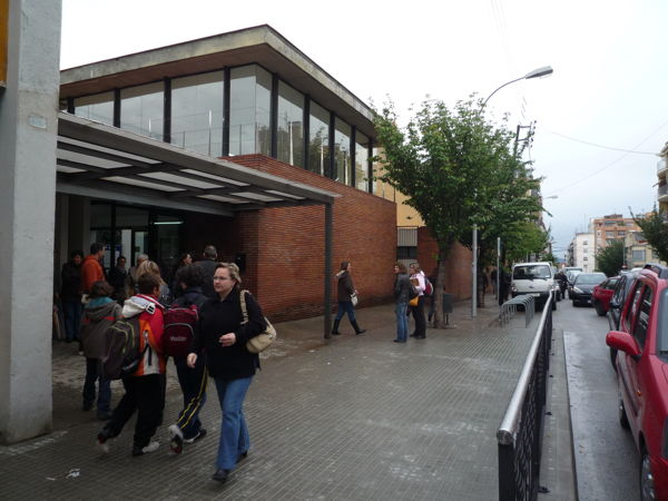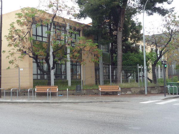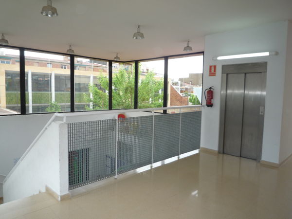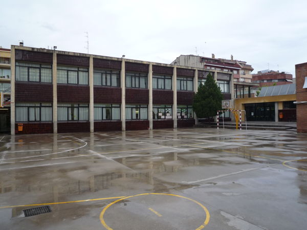 El bloque situado en la calle Ramón y Cajal, se retrasa respecto a la alineación de la calle para dar cabida a un elemento lineal que se interpone a esta para preservar las aulas del ruido de esta calle principal y ruidosa. Este elemento contiene el acceso y un cuerpo para la administración que se articula con pequeños patios.